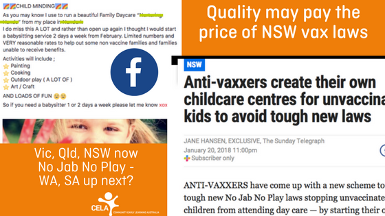 Only a few days beyond the NSW deadline, the Sunday papers had their first examples of public Facebook posts offering ‘babysitting’ for unvaccinated children from the Northern Rivers region – along with inner city Adelaide it has the lowest vaccination rates in Australia. This, too, has been a concern for CELA’s members who have asked many times “Where will the children go?”.