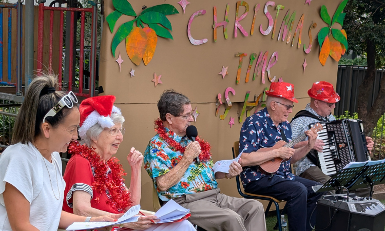The ensemble plays at the retirement village and visits Koala to perform, share musical instruments with the children and learn songs together, culminating in an ‘all-in’ Christmas concert at the end of the year.