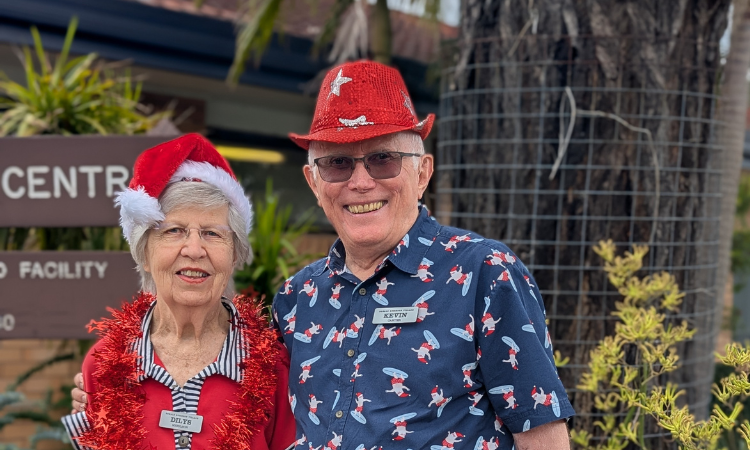 Dilys and her friend Kevin ready for the Koala Child Care Centre Christmas Party